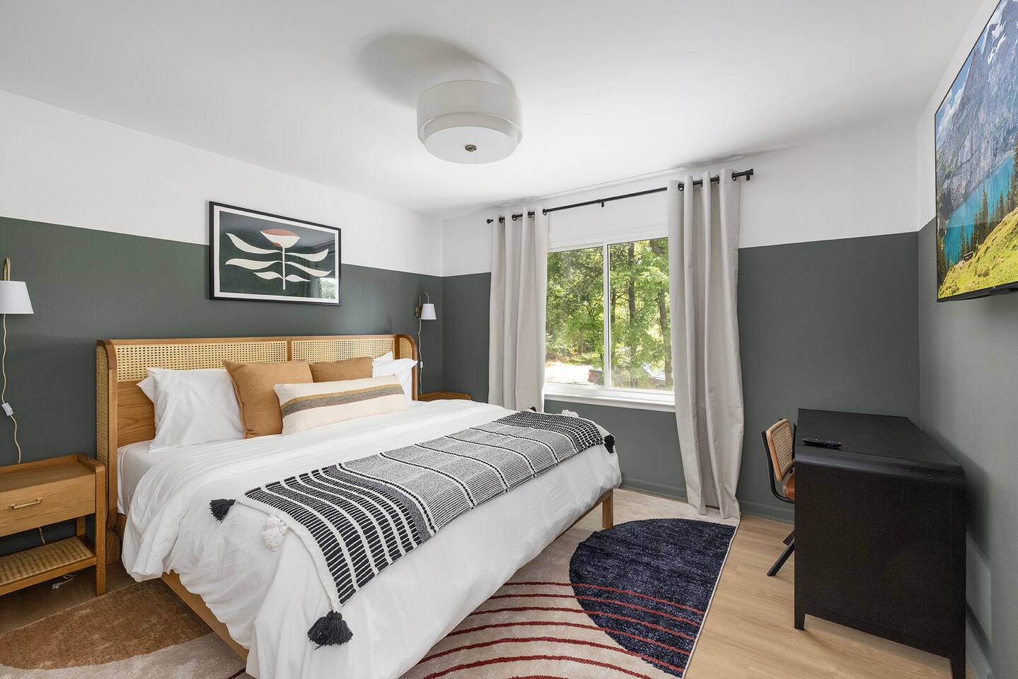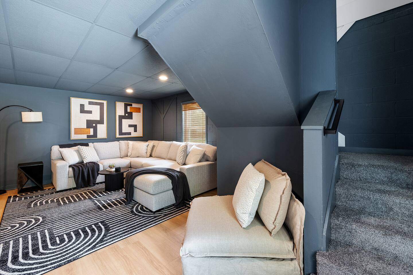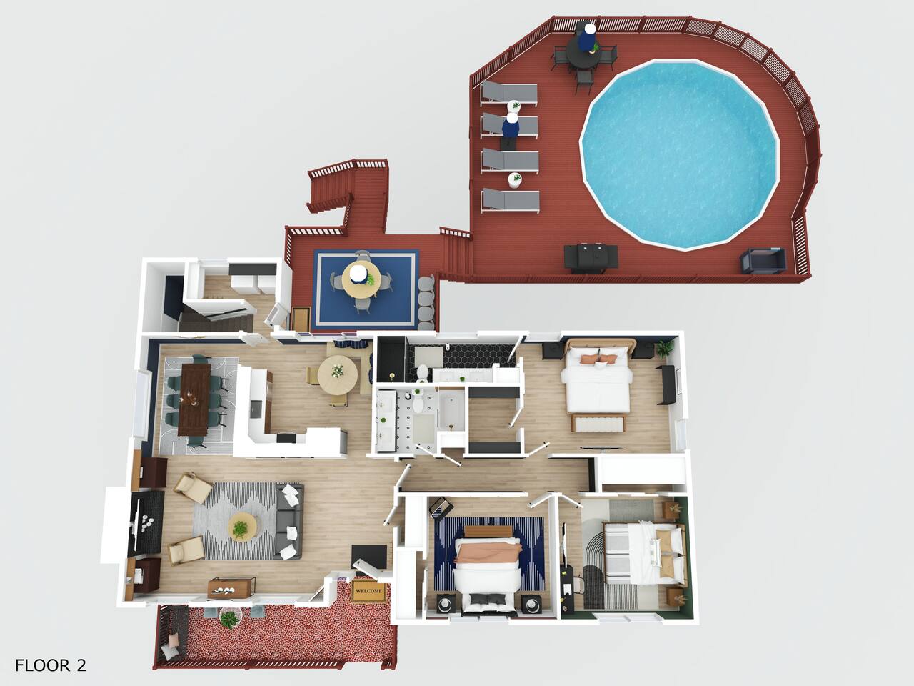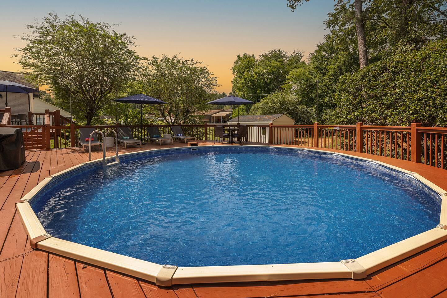 **This home is in a quiet neighborhood. Parties, events, and large gatherings are strictly prohibited. We have a zero-tolerance policy—any violation will result in cancellation without refund, immediate removal, and will be reported. Thank you for respecting our home and community.** There are 3 bedrooms on the main level (top floor - you must climb stairs) + an additional private bedroom in the basement. *Your very own private pool - (the pool will be open May through October) -4ft shallow all the way around -Sun loungers + outdoor seating + umbrellas for shade -Your very own Blackstone grill >Main Level: *Primary bedroom -King mattress -en suite full bathroom with dual vanities and a standing shower -Private TV -Working space -Walk-in Closet -Blackout curtains *Guest bedroom -Queen mattress -Working space -Closet with shelves and ability to hang clothes -Blackout curtains *Guest bedroom -King mattress -Working space -Private TV -Closet with shelves and ability to hang clothes -Blackout curtains >Basement/Ground Level: *1 private bedroom -Queen mattress -Closet with shelves and ability to hang clothes *Big sectional -Private TV for everyone to congregate to *Private working space >Backyard: -Huge deck -Plenty of outdoor seating + umbrella for shade *Important* We require ALL reservations to sign our Rental Agreement. This will need to be completed in order to receive your door code.